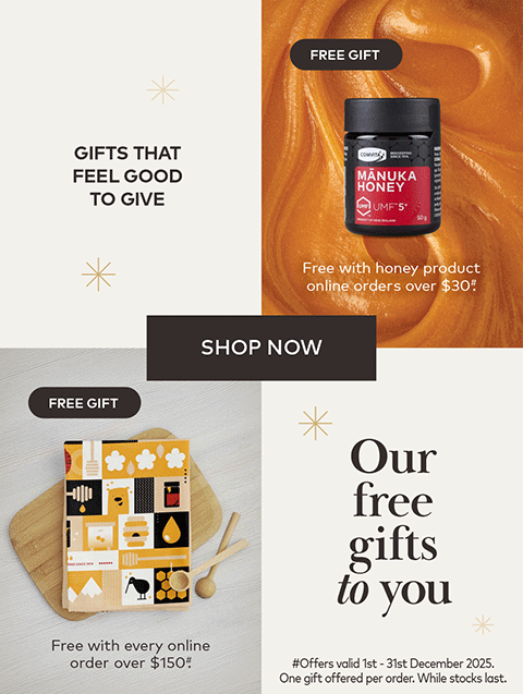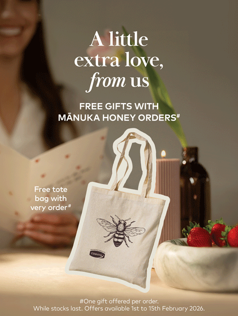 Packed with over 2,000 natural bioactive compounds, Mānuka Honey supports your gut and immune health, and is proven to heal. Our Mānuka Honey is four factor tested to meet stringent UMFᵀᴹ standards for potency, authenticity, freshness and shelf life. The higher the UMFᵀᴹ level the more potent the honey. Comvita guarantees the UMFᵀᴹ level in every spoonful of our Mānuka Honey!