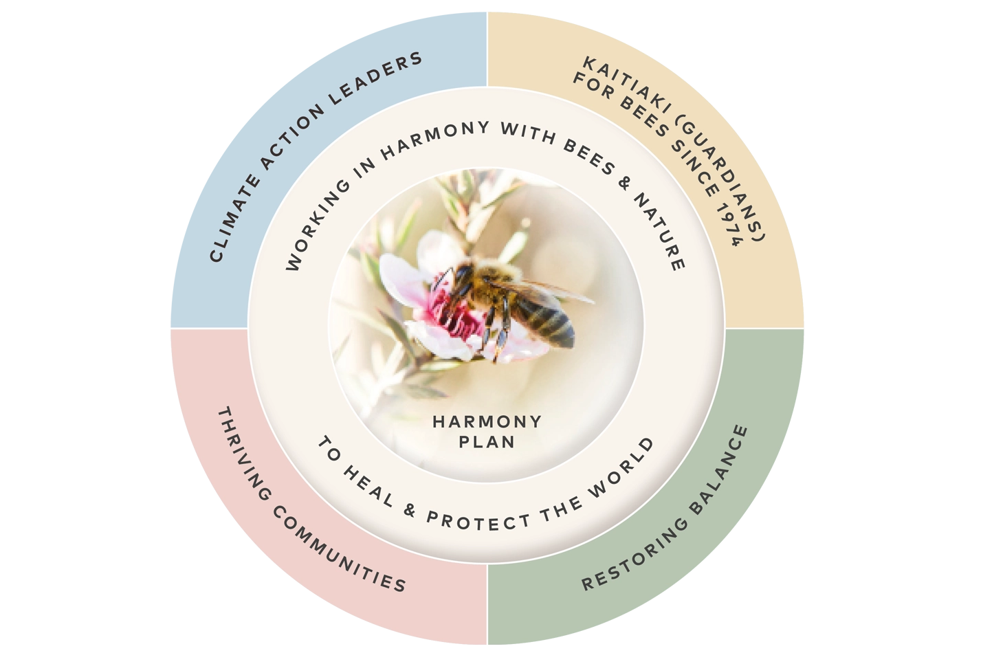 Our Harmony Plan drives several key sustainability initiatives that reflect our ambition to leave the world in a better place. As climate action leaders we will become carbon positive by 2025, we stand as kaitiaki (guardians) for bees – aspiring to save 30 million bees per year, we aim to restore balance to ecosystems through native tree planting programs and leave positive impact in human populations around the world through employment opportunities and community outreach programs