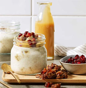 Get the full recipeCreamy oats soaked overnight in yoghurt, sweetened with Mānuka honey and the caramel richness of dates for an effortless, nourishing breakfast.